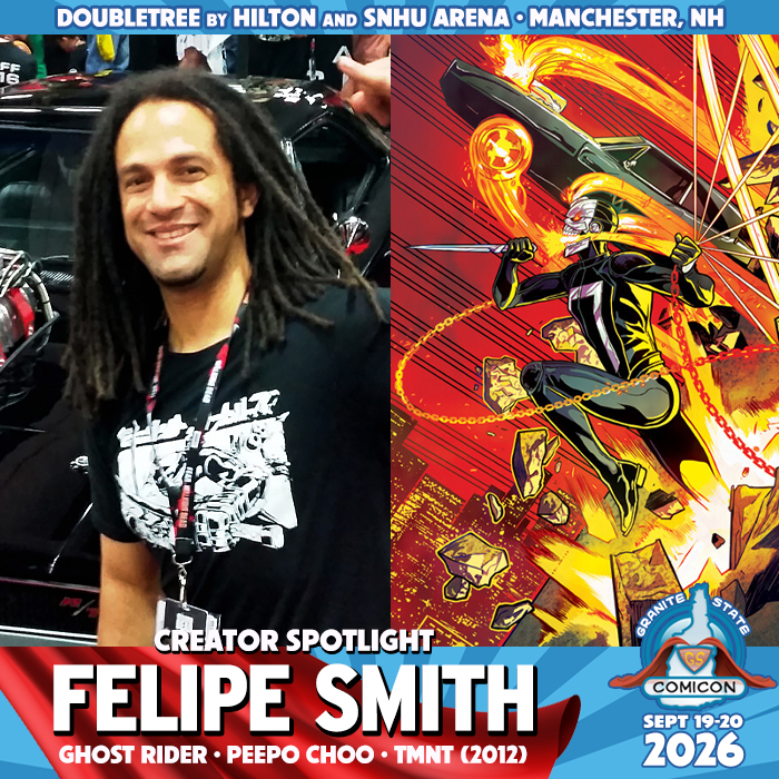 Felipe Smith Felipe Smith is an Ohio-born, Buenos Aires-raised Writer/Artist and graduate of The School of the Art Institute of Chicago (SAIC). His comics career began in 2005 with his first 3-volume graphic novel series, MBQ. Upon its completion in 2008, he moved from Los Angeles to Tokyo, Japan to publish his second 3-volume graphic novel series, PEEPO CHOO, initially serialized by Kodansha for a Japanese audience and later released in English by Vertical Inc. After working 4 years in the Japanese market, he returned to LA in 2012 to join Nickelodeon’s TEENAGE MUTANT NINJA TURTLES animated TV series as a full time character designer. In 2014 Marvel Comics announces him as the writer of monthly ALL-NEW GHOST RIDER and creator of its protagonist, Robbie Reyes. In 2016 Felipe’s co-creation for Marvel crossed over from Publishing to Television with Robbie Reyes’ introduction to Marvel’s Agents of S.H.I.E.L.D., played by Gabriel Luna on ABC.
